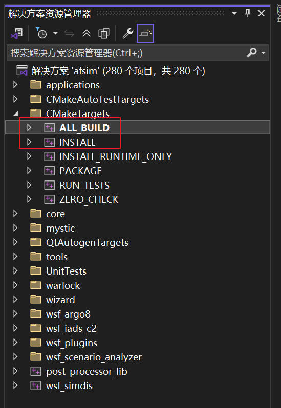 5、右键INSTALL生成,成功后会在构建目录下生成wsf_install文件夹